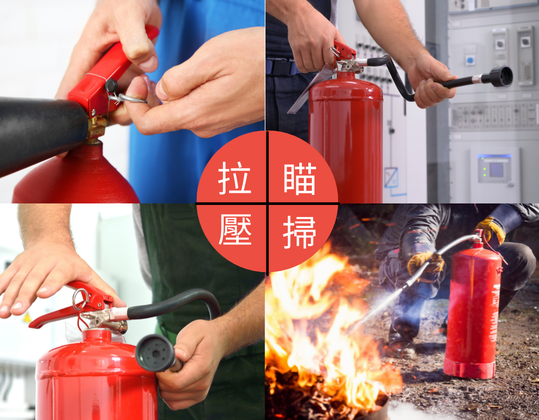 滅火器使用方法 口訣:拉.瞄.壓.掃